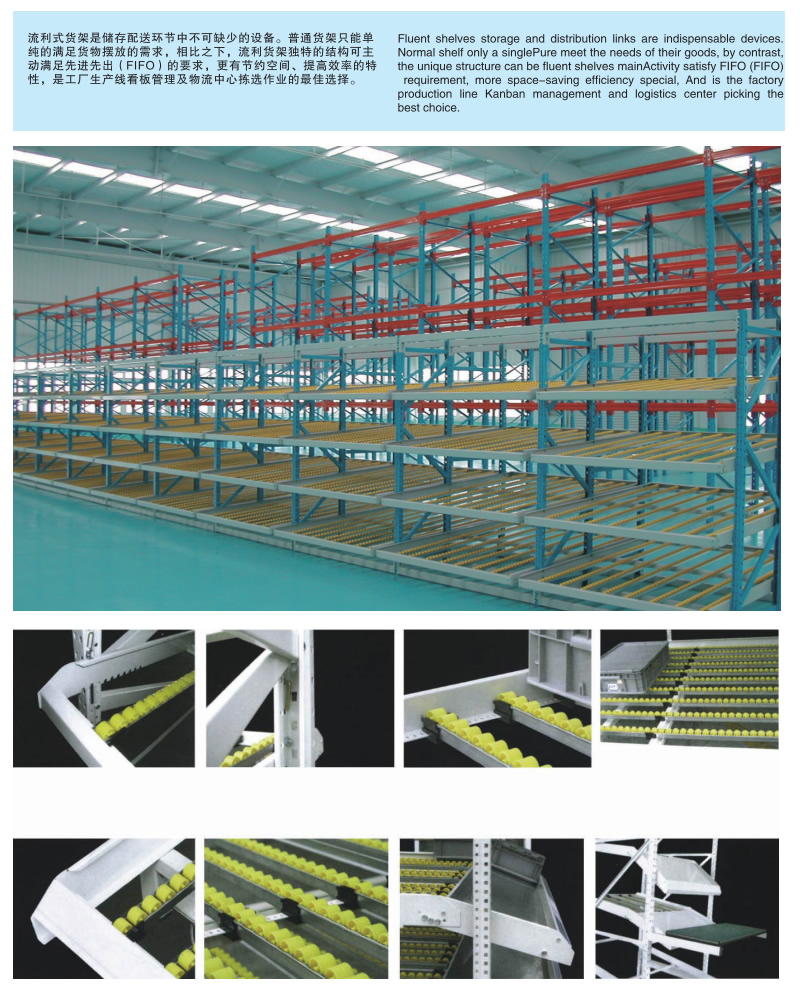 Á÷Àû»õ¼ÜµÈͬÓÚÁ÷Àûʽ»õ¼Ü£¬²úÆ·³£ÓÉÖÐÐͺáÁºÊ½»õ¼ÜÑÝ±ä¶ø³É£¬Í¨¹ý¹öµÀ½«»õÎï´ÓÅä»õ¶ËÊäË͵½È¡»õ¶Ë£¬»õÎï½èÖúÖØÁ¦×Ô¶¯Ï»¬£¬¿ÉʵÏÖ¡°ÏȽøÏȳö¡±×÷Òµ£¬Ê¹Óóɱ¾µÍ,´æ´¢Ëٶȿ졢Ãܶȴó¡£Í¨³£Ê¹ÓÃÔÚÆóÒµµÄ¾«ÒæÉú²úÁ÷Ë®×÷Òµ¡£