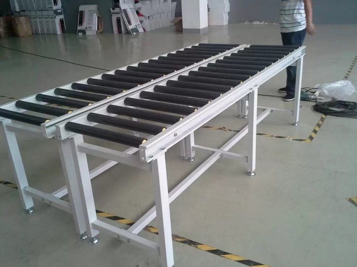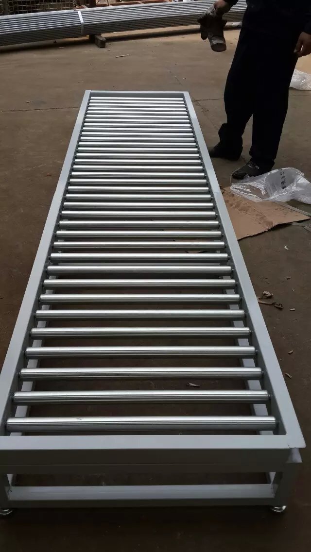 锟道线有两个大类。其一是有动力,其二是无动力,这个就是无动力锟道线的一种。无动力的基本原理就是利用物体的自身重力,使物体以均匀加速度自动分配到各个工位。
